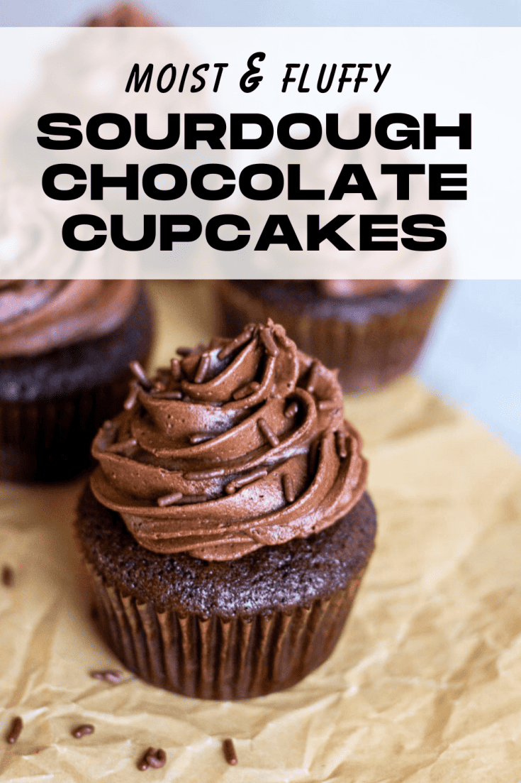 These super moist sourdough chocolate cupcakes are packed full of decadent chocolate flavor in each bite. Deliciously moist and fluffy cupcakes, sent to the next level of chocolatey perfection with a chocolate buttercream frosting. This recipe comes together easily with simple ingredients and simple steps. Even the beginner baker can whip out a batch of these perfectly delicious chocolate cupcakes.